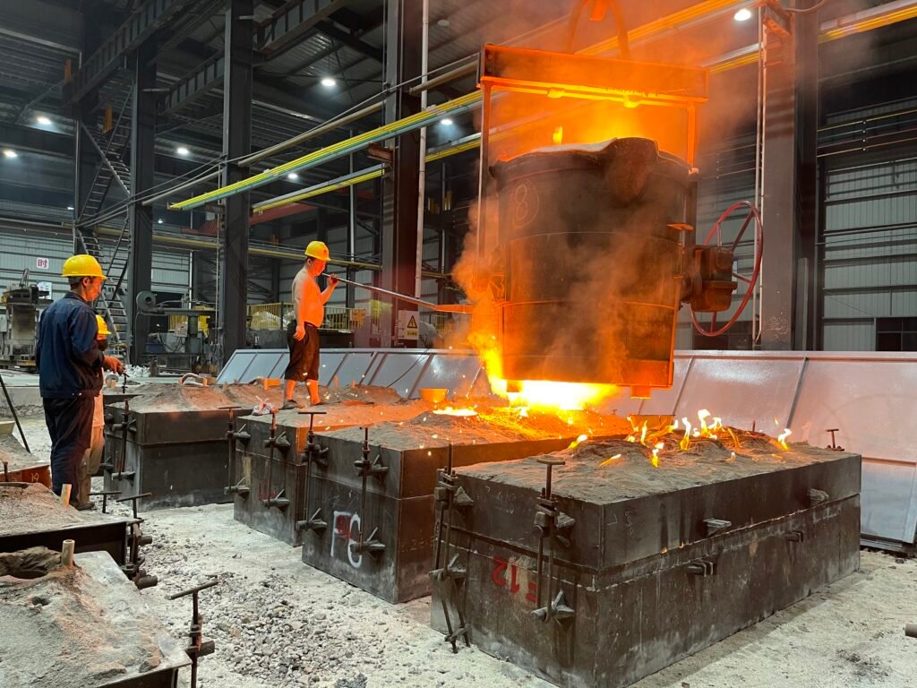 This project used a large-format 3D printed pattern to form cope and drag sand molds, shown here staged pre-pour after pattern withdrawal.